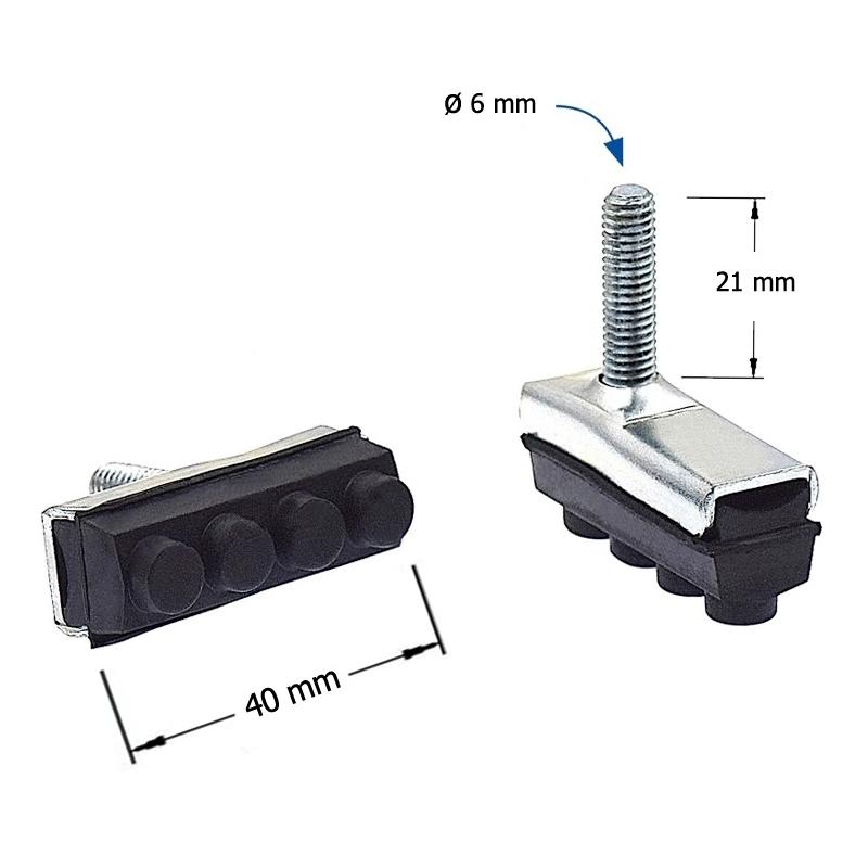 Cette paire de patins prémontés sur base en acier galvanisé avec tige filetée de 6 mm offrent la possibilité de remplacer facilement les patins d’origine en cas d’usure, craquelures des caoutchoucs ou détérioration du support causé par la rouille.