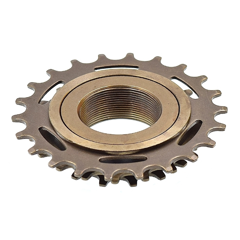 La roue libre est fabriquée en acier traité, elle se visse sur le filetage du moyeu de la roue arrière possédant 1 à 3 vitesses et s’adaptant sur les axes courts.