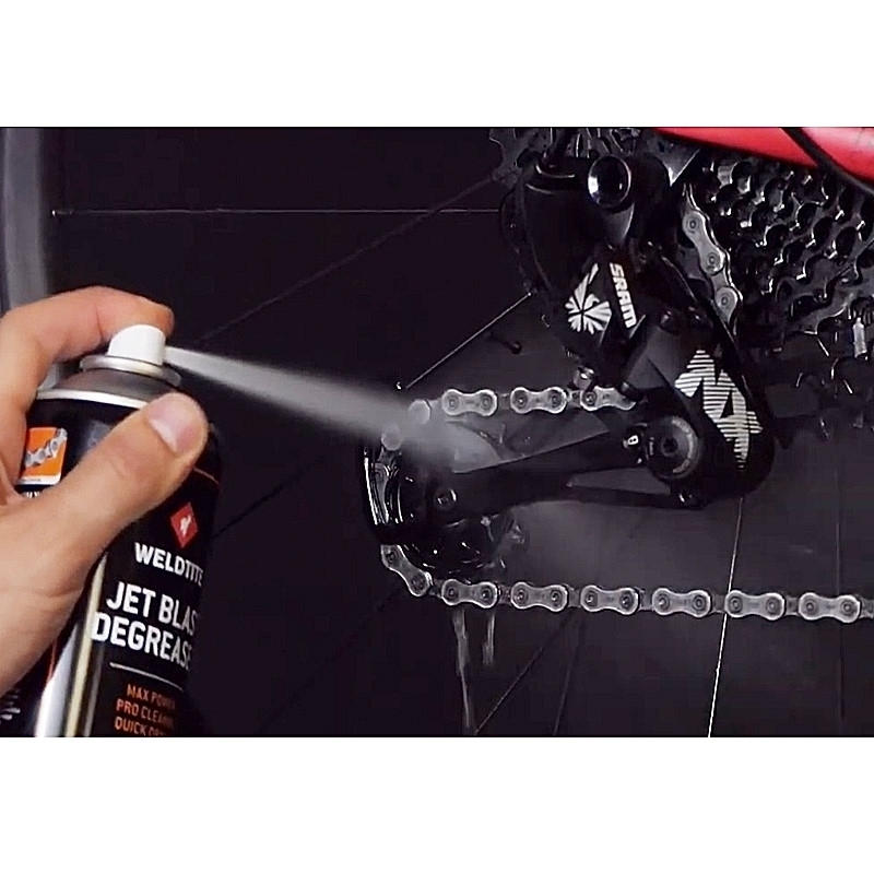 JET BLAST est conçu pour être utilisé sur les transmissions et comporte un puissant jet de pulvérisation pour souffler la saleté, la boue et la crasse des pièces en mouvement. Ainsi le retrait de la cassette ou de la chaîne n’est plus nécessaire pour obtenir une finition impeccable.