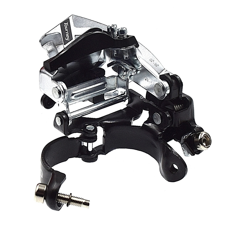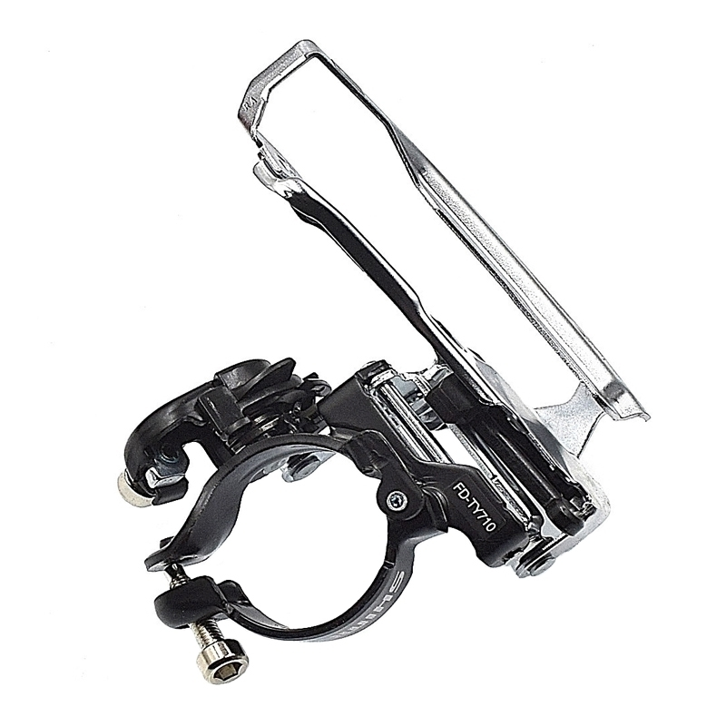 Le dérailleur FD-TY710 se fixe sur l’avant du cadre au moyen de son collier et ses deux bagues adaptatrices le rendant compatible avec des diamètres de tube de 28,6 mm et 31,8 mm. Disposant d’un tirage Dual Pull par le bas ou par le haut, celui-ci est adapté au transmission à 6, 7 ou 8 vitesses et se monte avec un pédalier tripe plateau disposant d’un maximum de 48 dents.