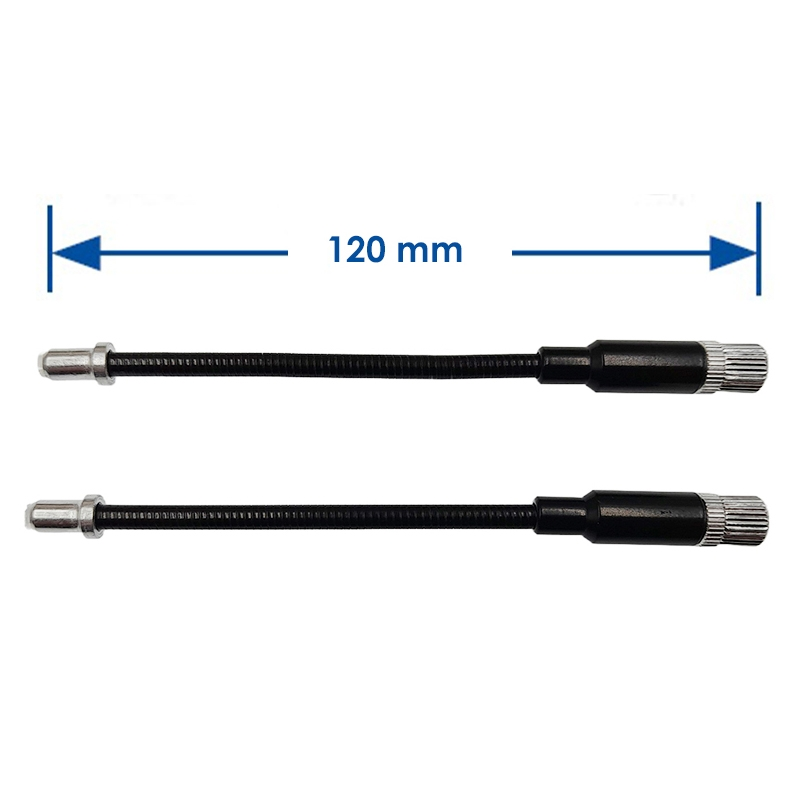 Paire de tuyaux flexible réglables en alliage d’une longueur de 120 mm avec butéee et écrou permettant de régler la tension des câbles de frein vélo.