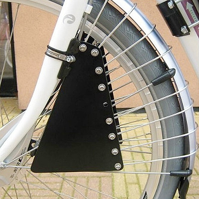 Robuste et léger, ce pare jupe unique pour vélo est fabriqué en aluminium. Il s’installe facilement sur la plupart des fourches.
