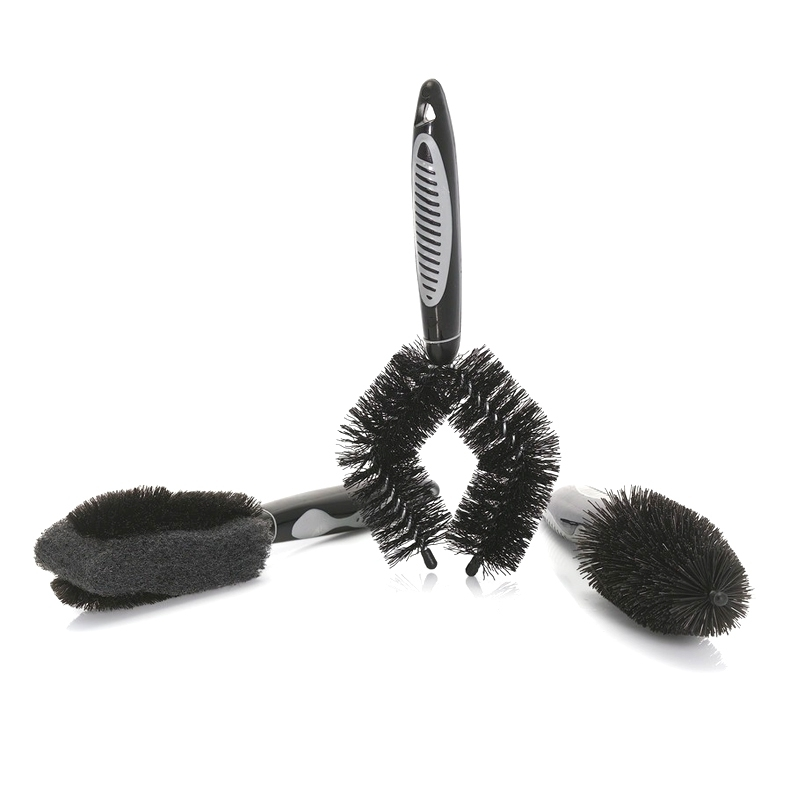 3 brosses XLC de différentes formes pour atteindre les endroits difficiles lors du nettoyage du vélo.