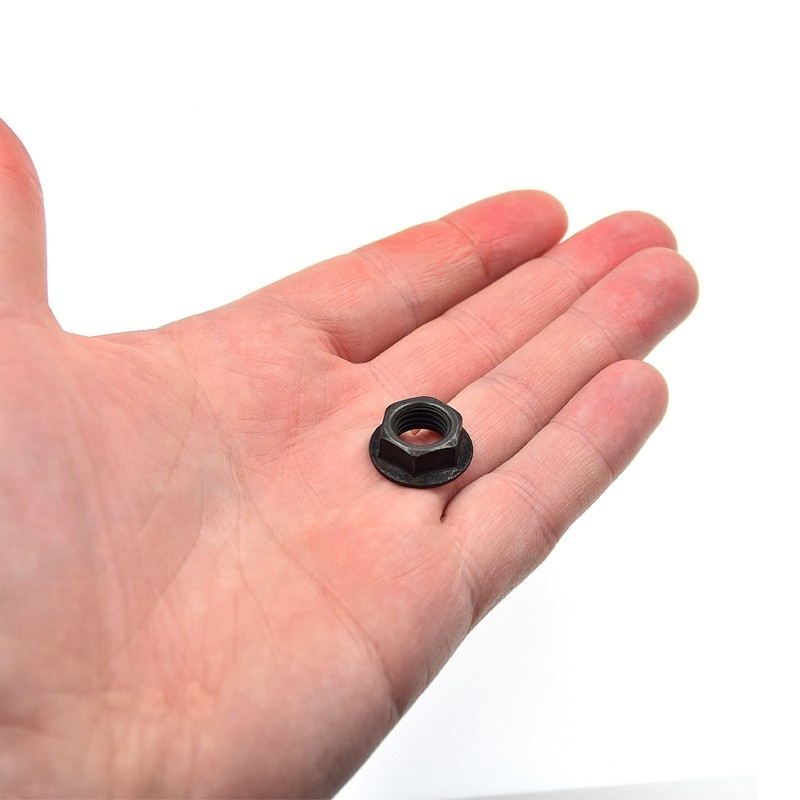 La base crantée de cet écrou pour axe de 10 mm permet à l’écrou de ne pas se dévisser sous la force exercée par la manivelle.
