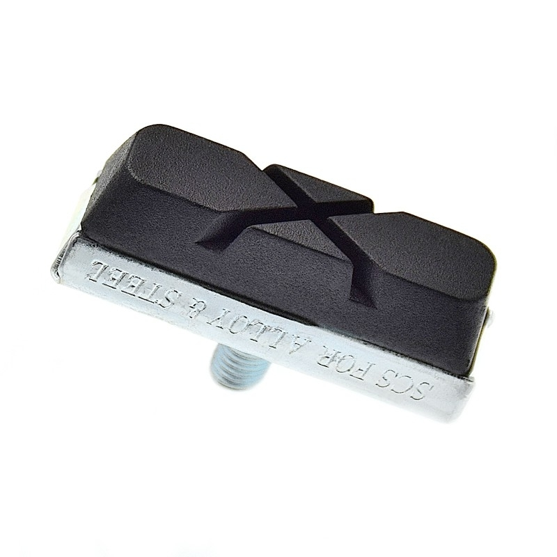 Compatibles avec les étriers de frains U Brake, ces paires de patins avec écrous remplacent les patins usagers ou abîmés sur un étrier de frein BMX. Le freinage se fait directement sur la jante du vélo.