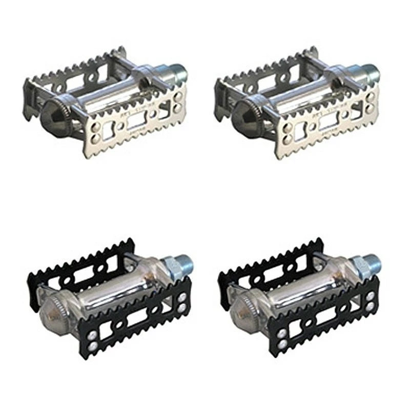 Les pédales Sylvan Stream MKS en aluminium anodisé équipées de roulements à billes sur cuvette disposent de parties crantées en acier sur les deux côtés des pédales afin de d’optimiser l’adhérence du pied par mauvais temps ou lors d’un appui prolongé pour monter une côte.