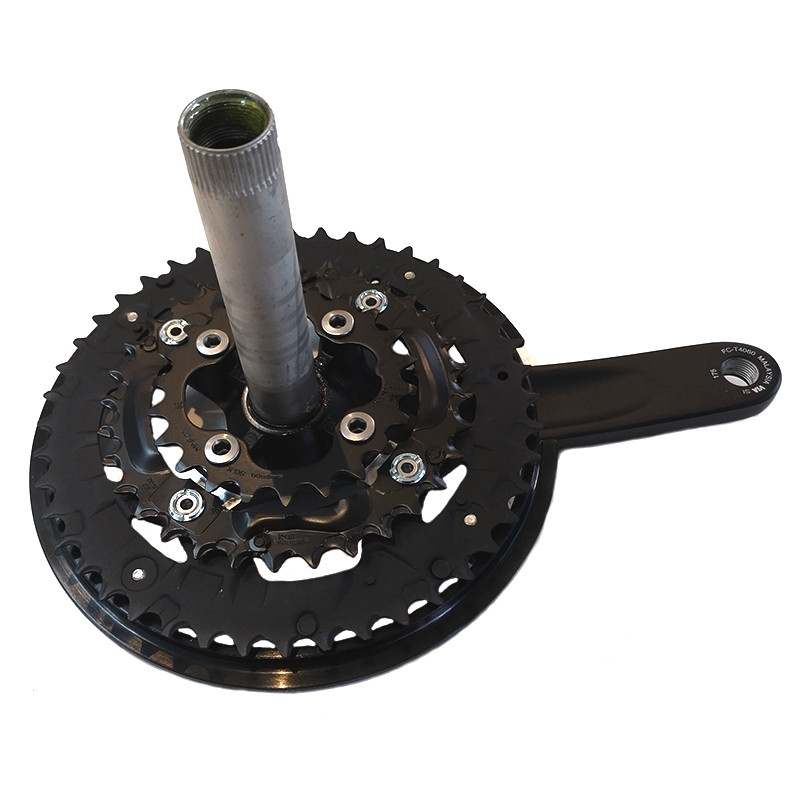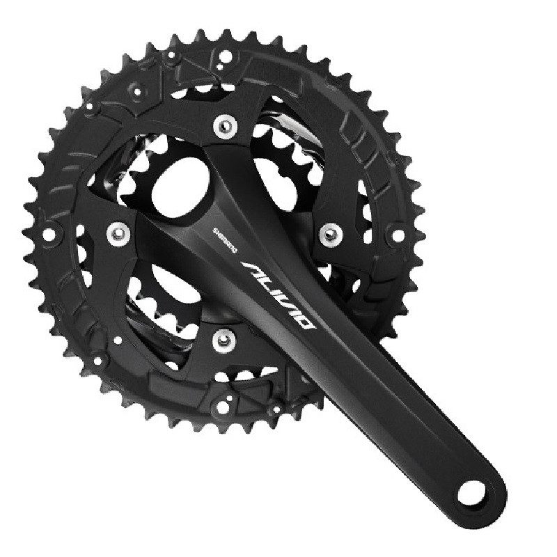 Le pédalier Shimano Alivio FC-T4060 à triple plateau 44-32-22 dents de couleur noir est destiné pour les changements de transmission à 9 vitesses. Le modèle est adapté pour les vélos chargés.