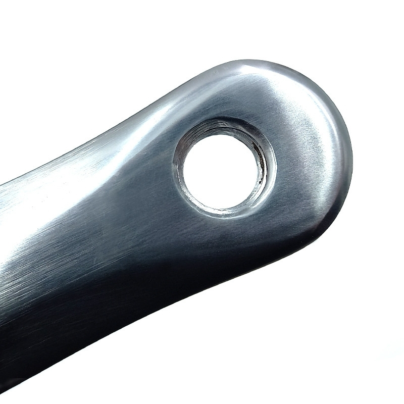 Ce pédalier vélo avec axe carrée et conçu en acier et d’aluminium forgé noir et argent, idéal pour le remplacement d’un ancien pédalier sur un vélo tout terrain ou d’un vélo trekking.