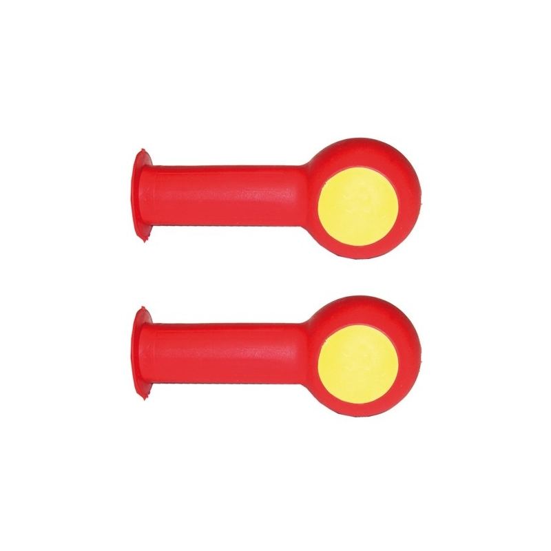 Paire de poignées enfant avec protection à boule permettant de sécurisé le côté extérieur des mains afin que le petit bout ne se griffe pas lors d’un frottement sur un mur ou lors d’une chute.