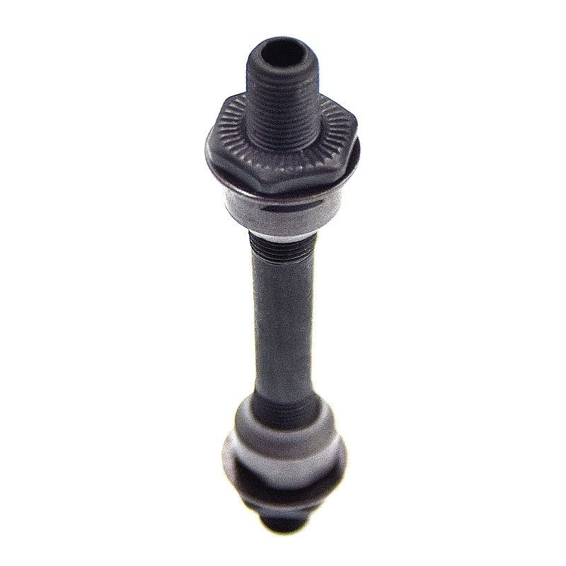 Cette pièce détachée en acier permet le remplacement d’un axe creux d’une longueur de 108 mm sur une roue de vélo.