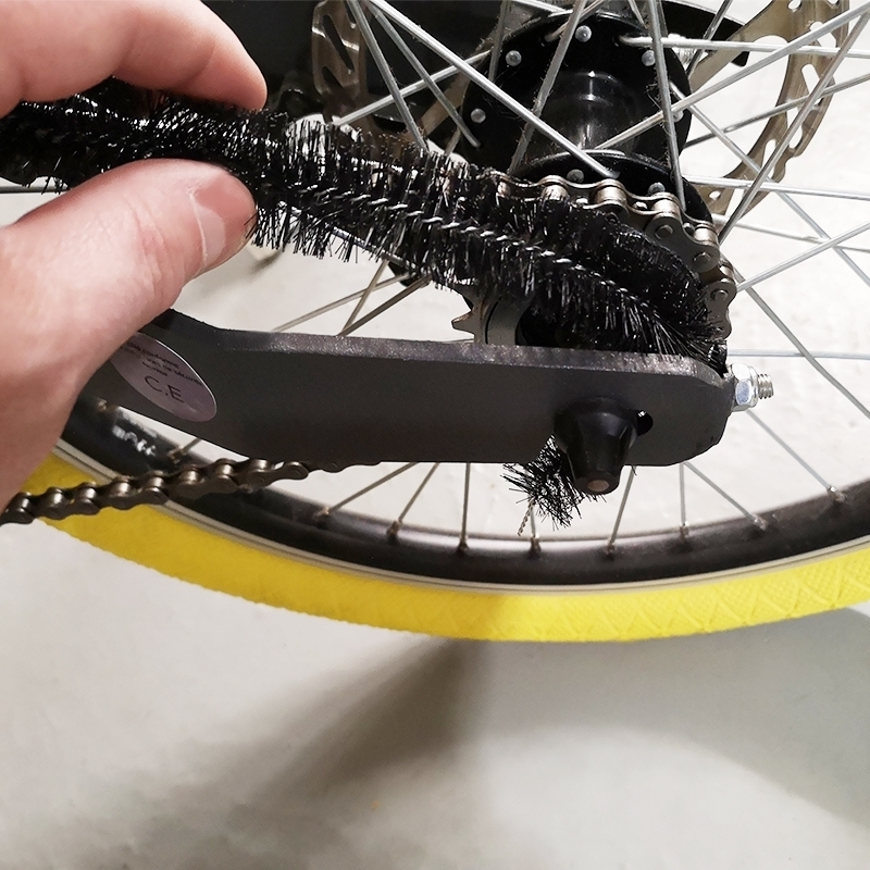 Pour déloger en profondeur les saletés présentes sur une chaîne de vélo, nous vous recommandons également la brosse de nettoyage et d’entretien pour chaîne de vélo.