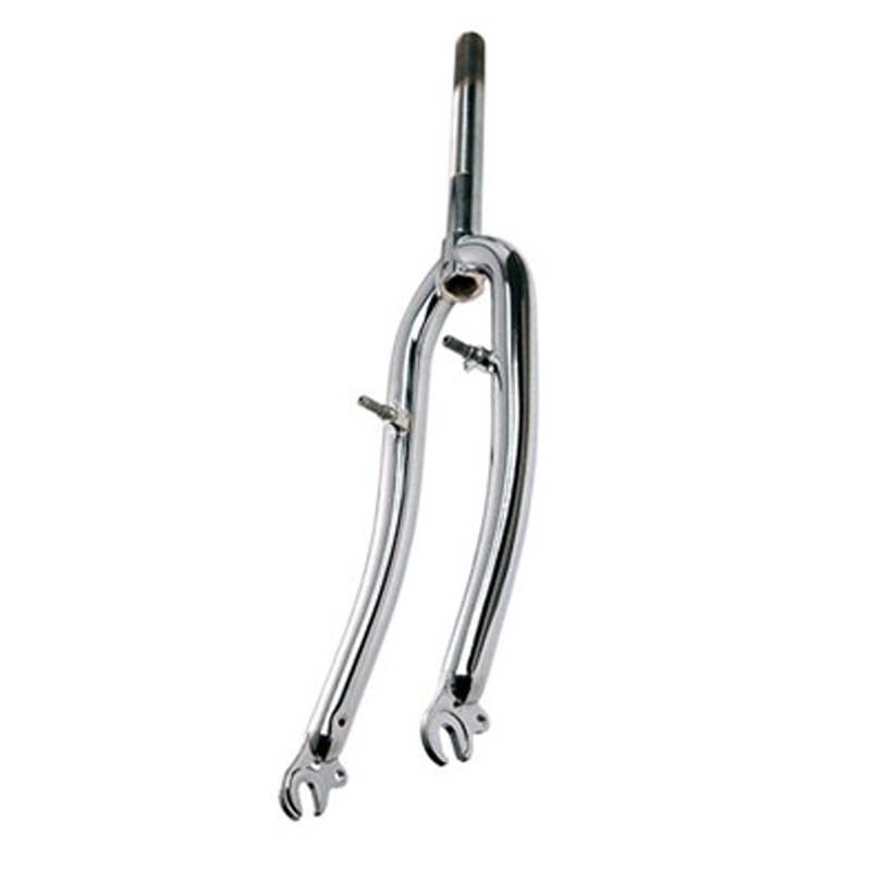 Cette fourche cintrée se fixe à la roue avant par des oeillets. Fabriquée en acier chromée, elle dispose d’un pivot fileté de 1 pouce de diamètre avec une longueur de 200 mm. Souple et résistante, elle ne pèse que 870 g.