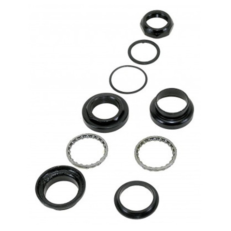 Ce jeu de direction noir s’installe sur une fourche à pivot fileté de 1 pouce 1/8 au niveau de la douille de direction d’un cadre vélo avec un diamètre interne de 34 mm et sur une fourche à pivot fileté de 1 pouce 1/8.
