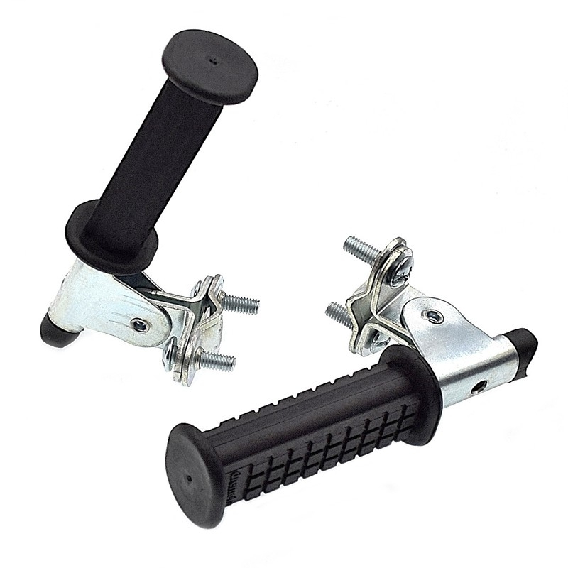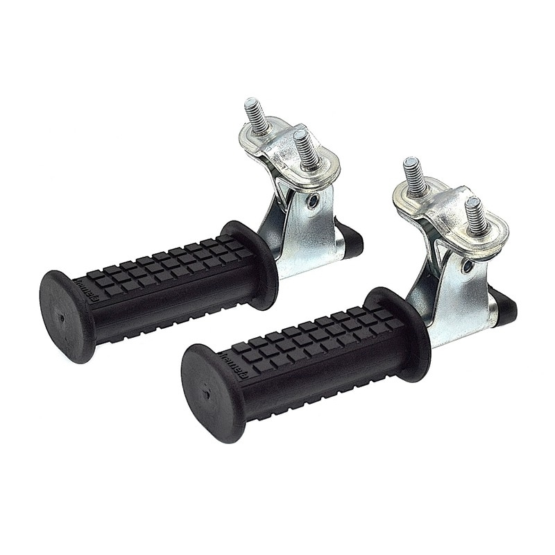 Fabriqué en acier et recouvert de caoutchouc, les pieds ont un bon point d’appui et évitent qu’il reste le long de le roue ou qu’ils ne se prennent dans les rayons. Facile à installer sur des tubes inférieur rond de à 18 mm de diamètre ainsi que pour les tubes carrés à section fine sans oublier d’apporter une couche supplémentaire de grip type caoutchouc de chambre à air de récupération pour un parfait maintien des repose pieds.