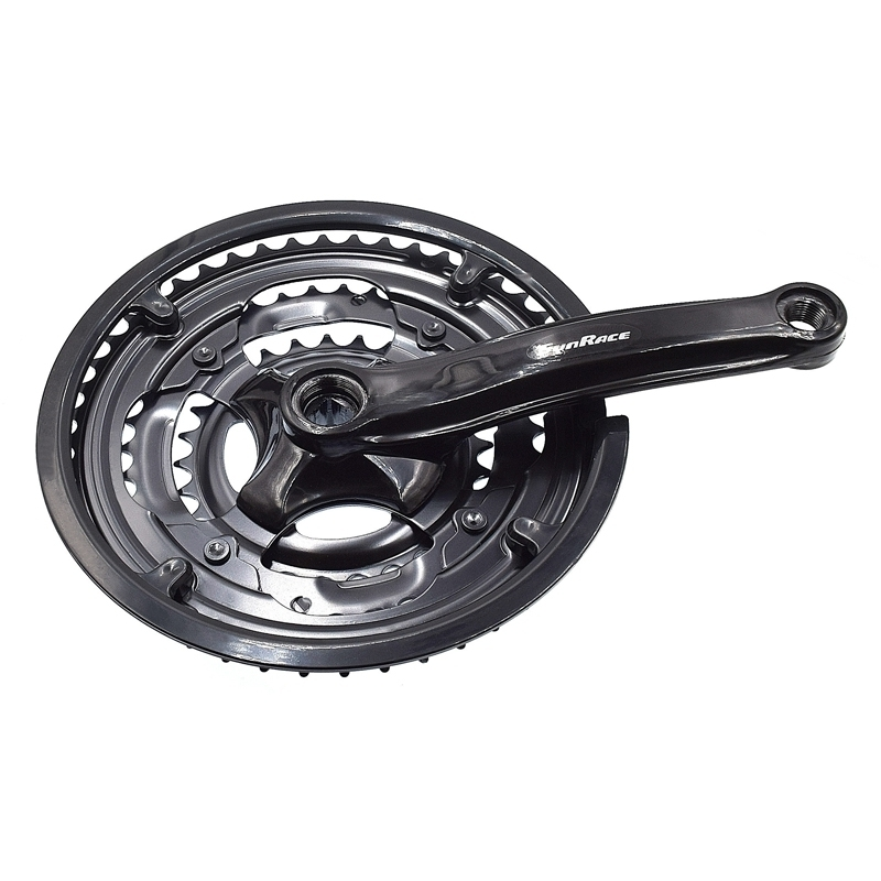 Ce pédalier de vélo à triple plateaux rivetés de 28, 38 et 48 dents est fabriqué en acier noir avec des manivelles robustes en aluminium avec protection plastifiées. Robuste et conçu pour un pédalage confortable, ce pédalier est recommandé sur vtt pour un usage au en ville, à la campagne et sur des chemins et routes avec des fortes montés.