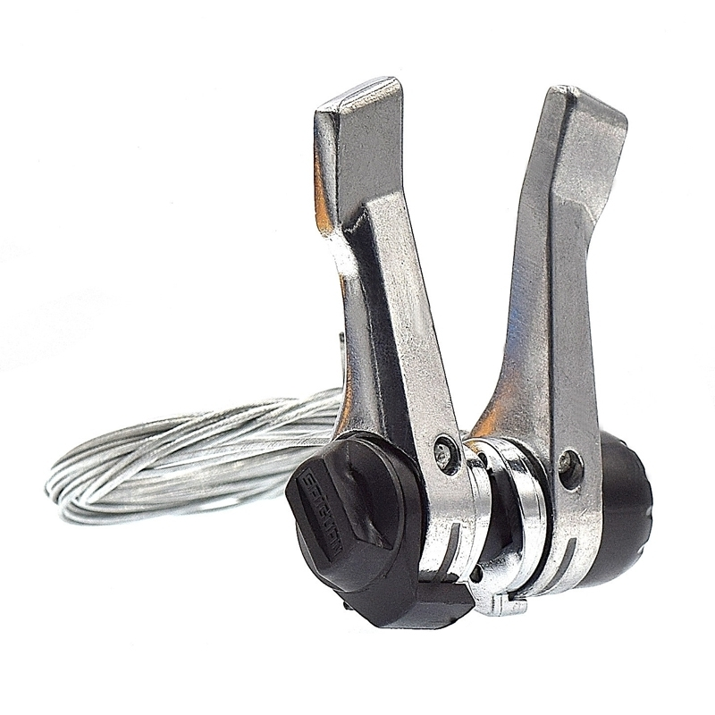 Cette paire de manettes en aluminium et acier permettent de remplacer celles d’origine présentent sur des vélos anciens ou tout simplement équiper un cadre de vélo en cours de fabrication.