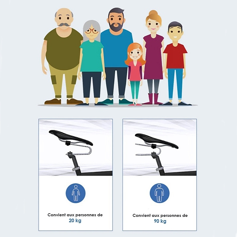 Le chariot robuste se déplace à avec facilité sur les doubles rails de la suspension pour un réglable parfait de la selle afin de choisir le niveau de confort optimisé par rapport au poids du cycliste et de la hauteur souhaité.