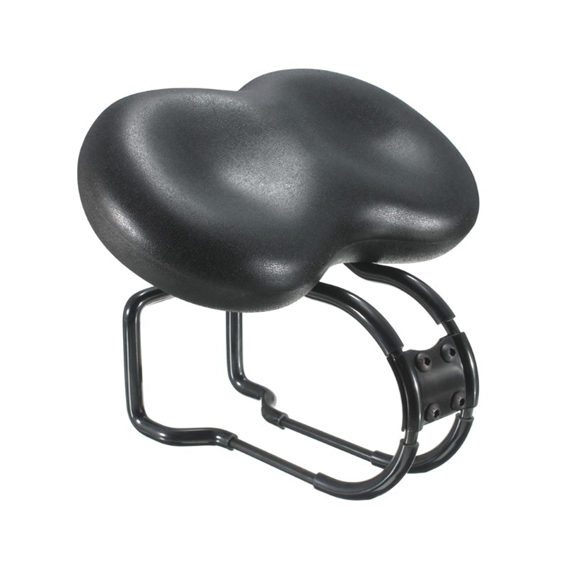 Cette selle de vélo sans bec assure un grand confort et réduit la friction des fessiers grâce à 4 points de suspension sous la selle.